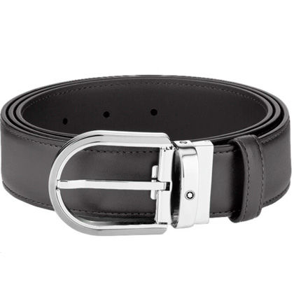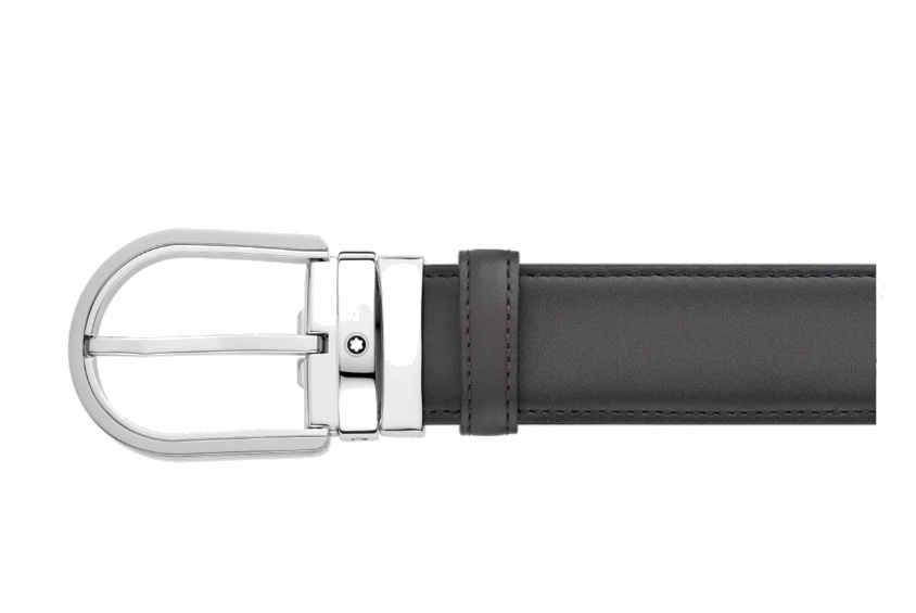 Кожаный ремень с пряжкой в форме подковы серого цвета 35 мм от магазина премиальных ручек Premium Pens в Краснодаре.